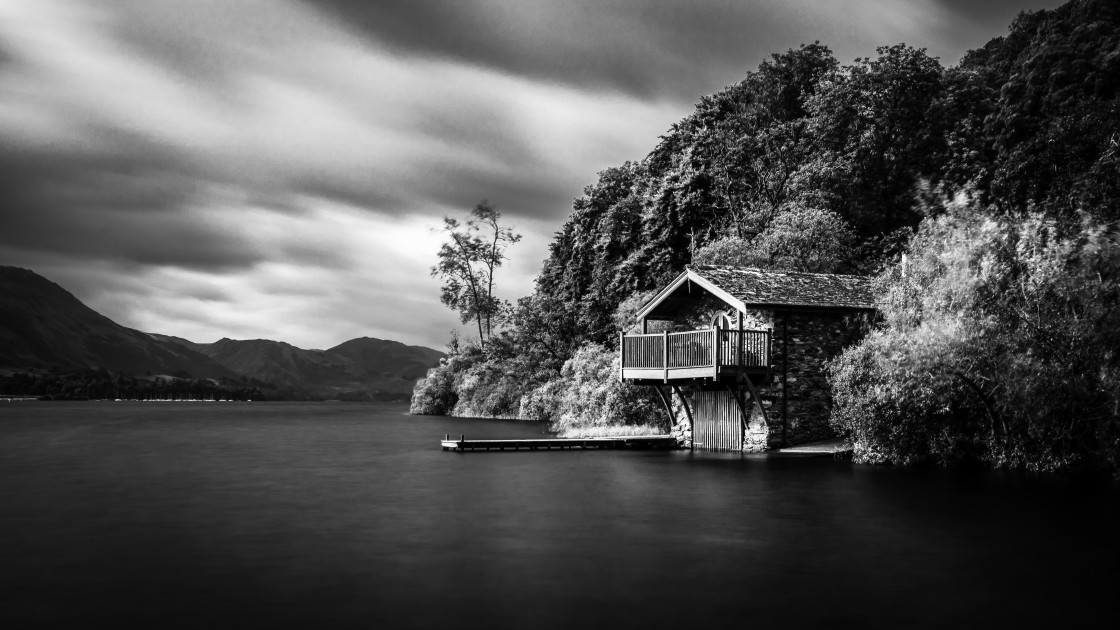 Ullswater Boat House in black and white.