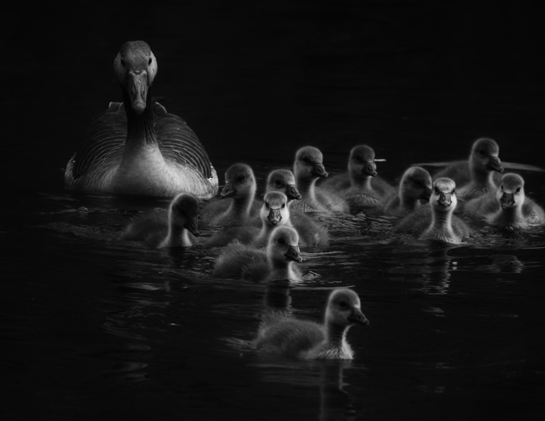 Greylag Gosling in black and white.