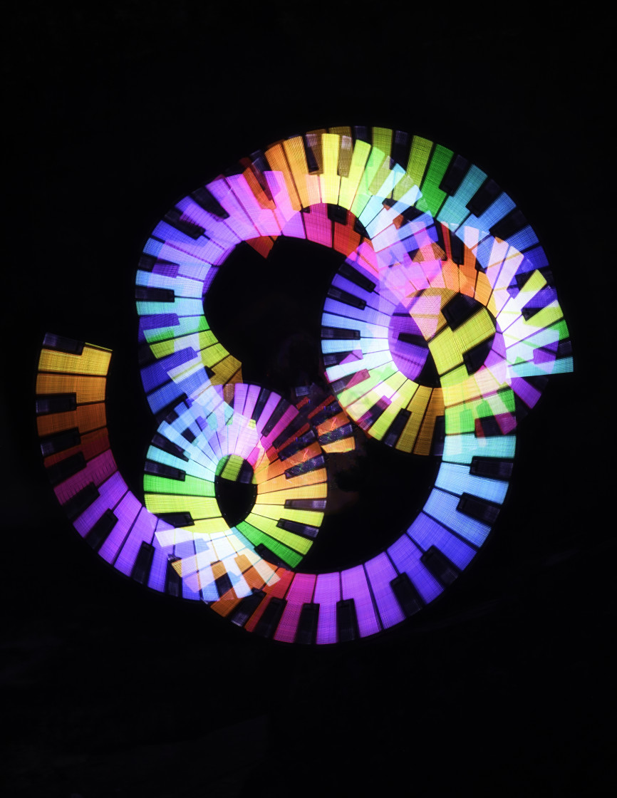 A light painting in the pattern of a piano keyboard.