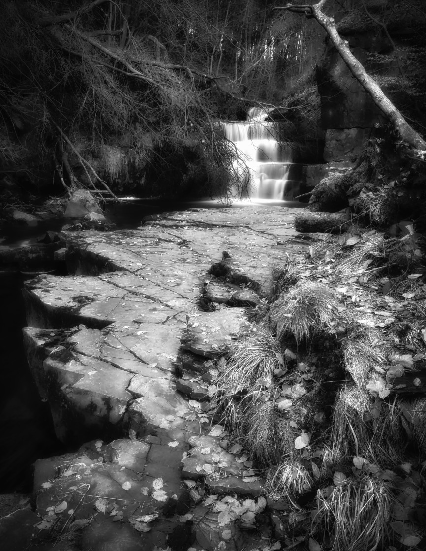Waterfall Promenade in black and white.